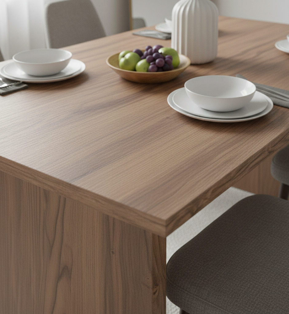 Granen gör att bordet får en mjuk och levande karaktär. Kvistar och ådring är en naturlig del av uttrycket och gör varje bord unikt. Små variationer i färg och struktur kan förekomma, vilket är en del av charmen i massivt trä.
