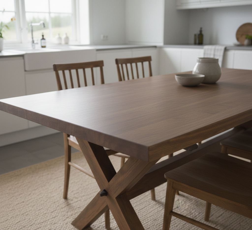 Alla matbord tillverkas för hand i vår verkstad i Falkenberg och mindre avvikelser i måtten kan förekomma.