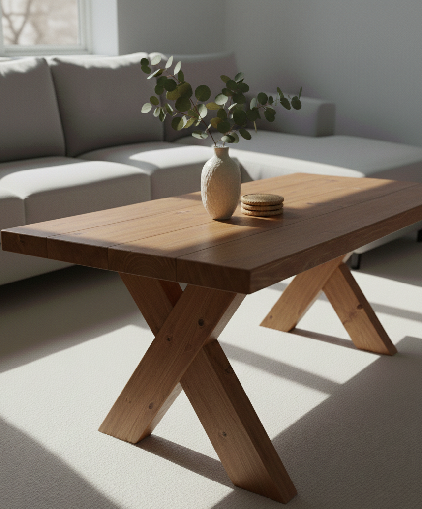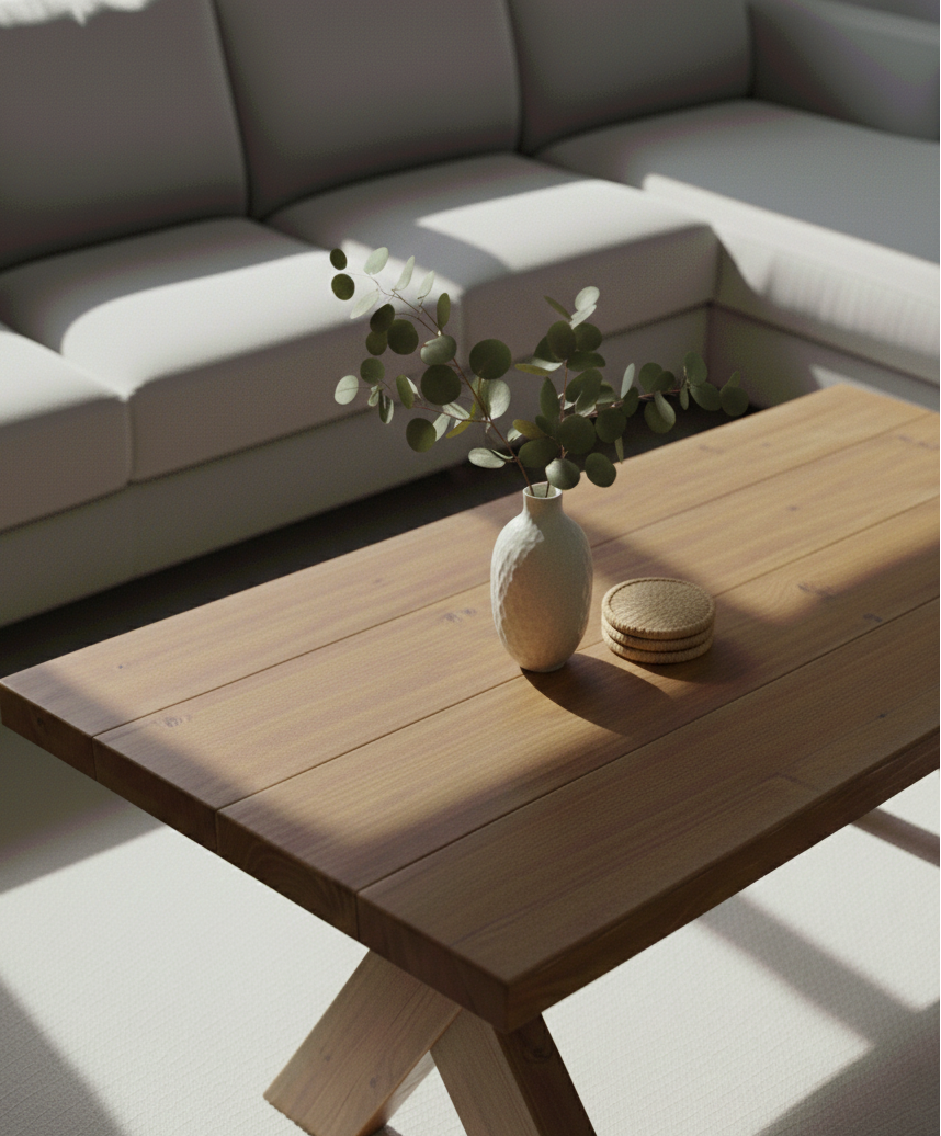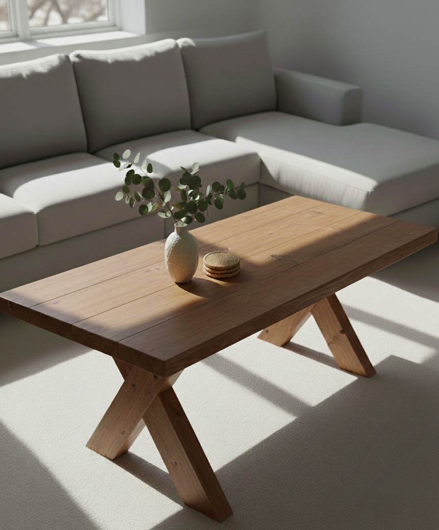 Detta soffbord är tillverkat i massiv gran och har en kraftig skiva på 45 millimeter. Ytan är lackad för att lyfta fram träets naturliga struktur och göra bordet tåligt i vardagen. Formen är rak och harmonisk och gör att bordet passar i både moderna och mer traditionella hem. Den varma karaktären i granen gör att bordet blir en naturlig del av rummet och ett fint blickfång vid soffan.